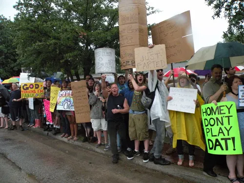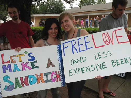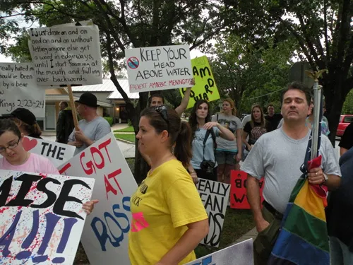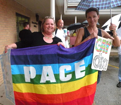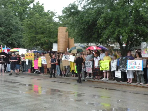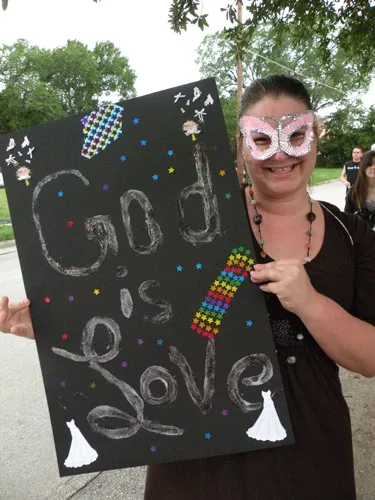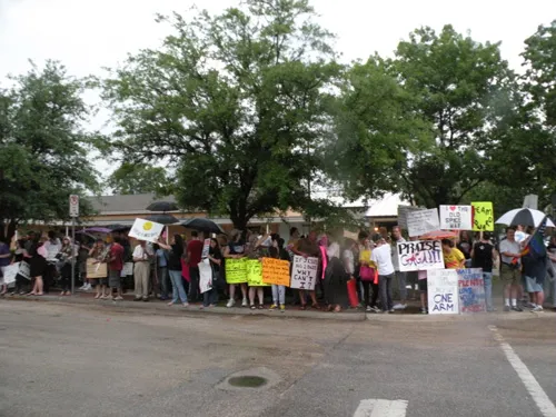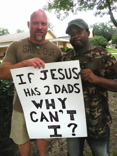 Coming all the way from Kansas to the doors of The Resource Center of Dallas to protest, hundreds of friends of our community came out to counter protest. "Hell Freezes Over" generated extreme hype, and amazingly enough, raised an undisclosed amount of funds through corporate sponsorships and donations to fix the ice machine. Great timing! Sidewalk chalk rainbow colored cobblestones were created just before the rain hit to welcome the fanatics. Perhaps the most touching was the love and humor and fellowship that radiated from the crowds standing strong in the rain, determined to shower the opposition with a greater sense of pride. You have to see the pics to believe it...
