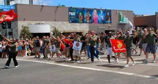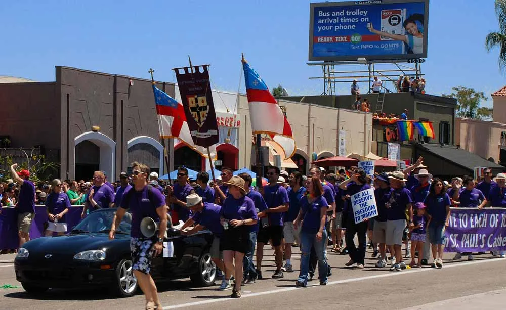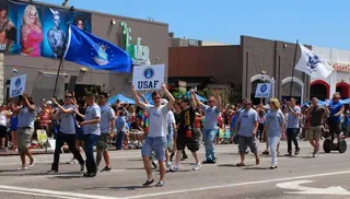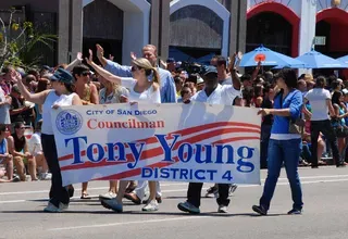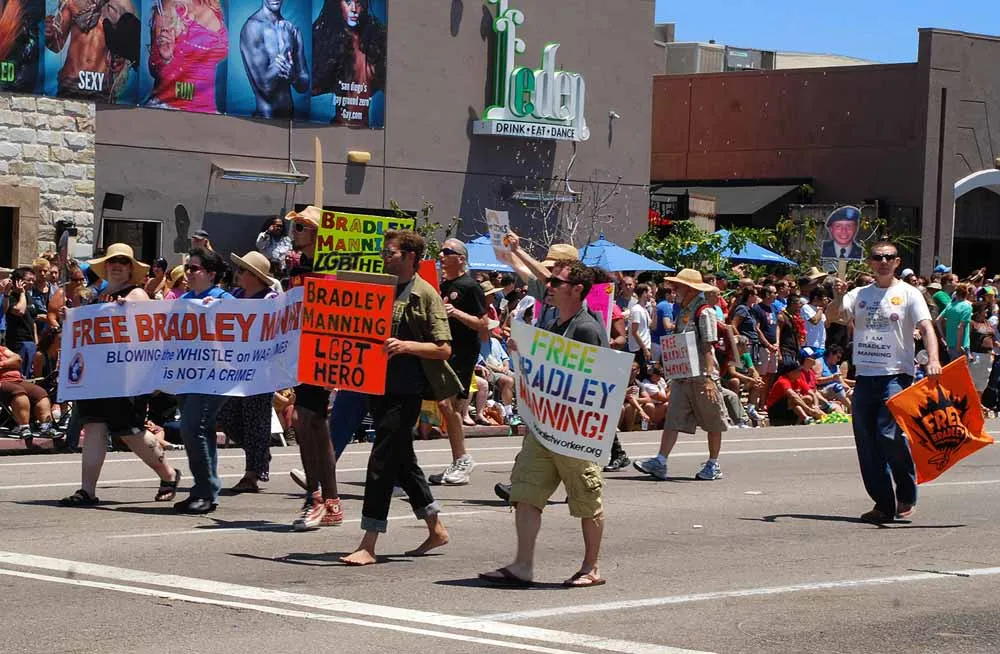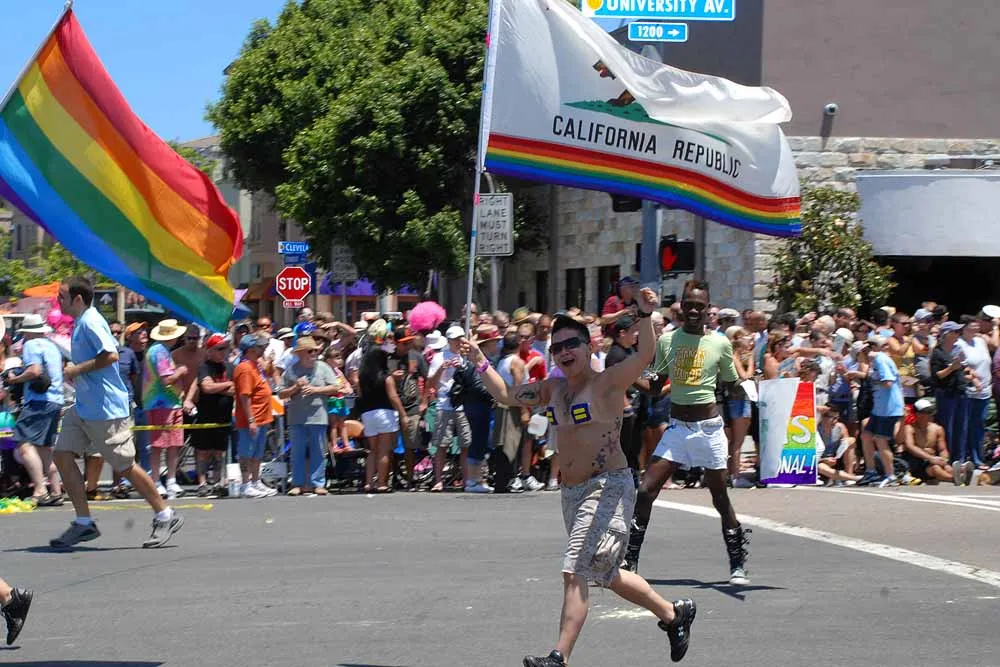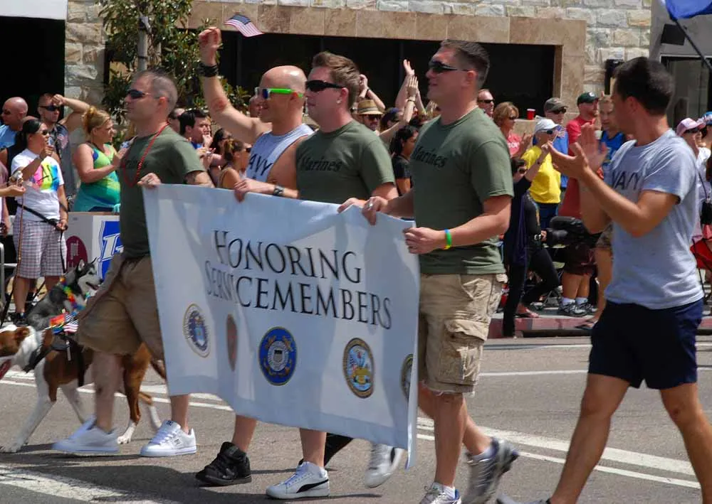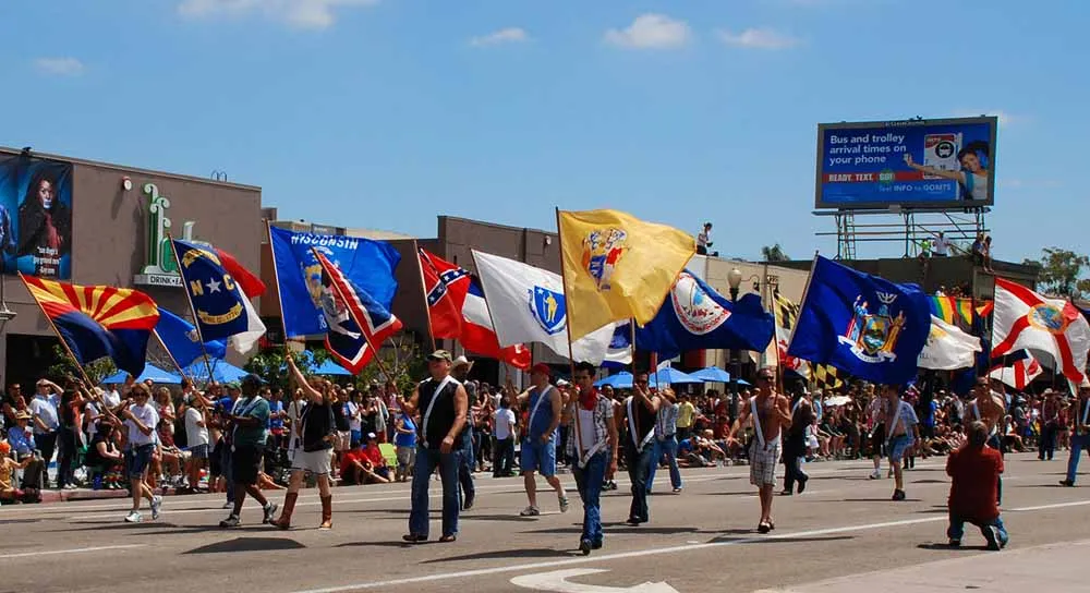 The annual San Diego LGBT Pride Parade is the 5th largest in the United States attracting over 150,000 spectators. This year, in addition to the standard turnout of GLBT supportive businesses, politicians and groups marching in the parade, about 200 US active-duty troops and veterans also marched with American flags and banners, thanks to the recent end of the military ban on openly gay troops.