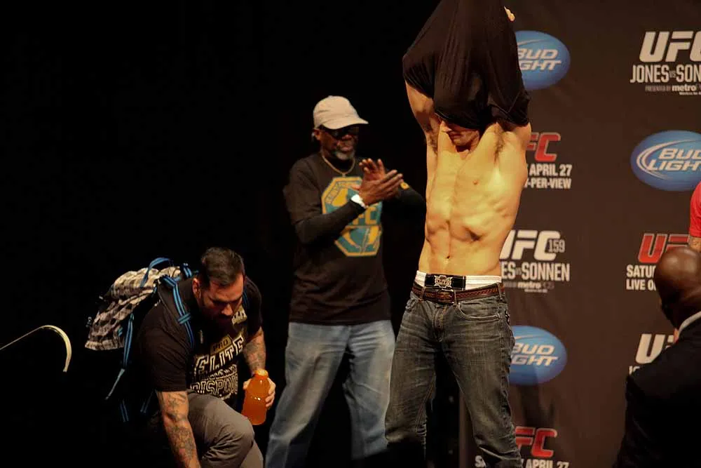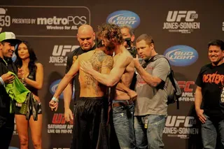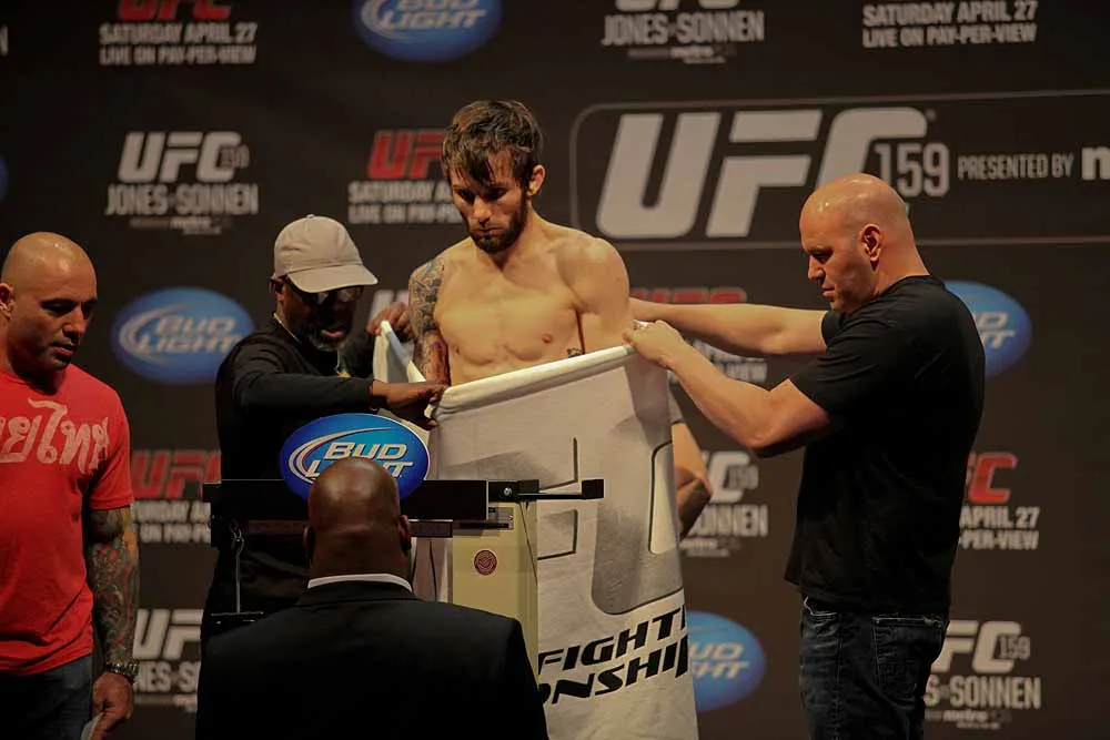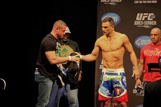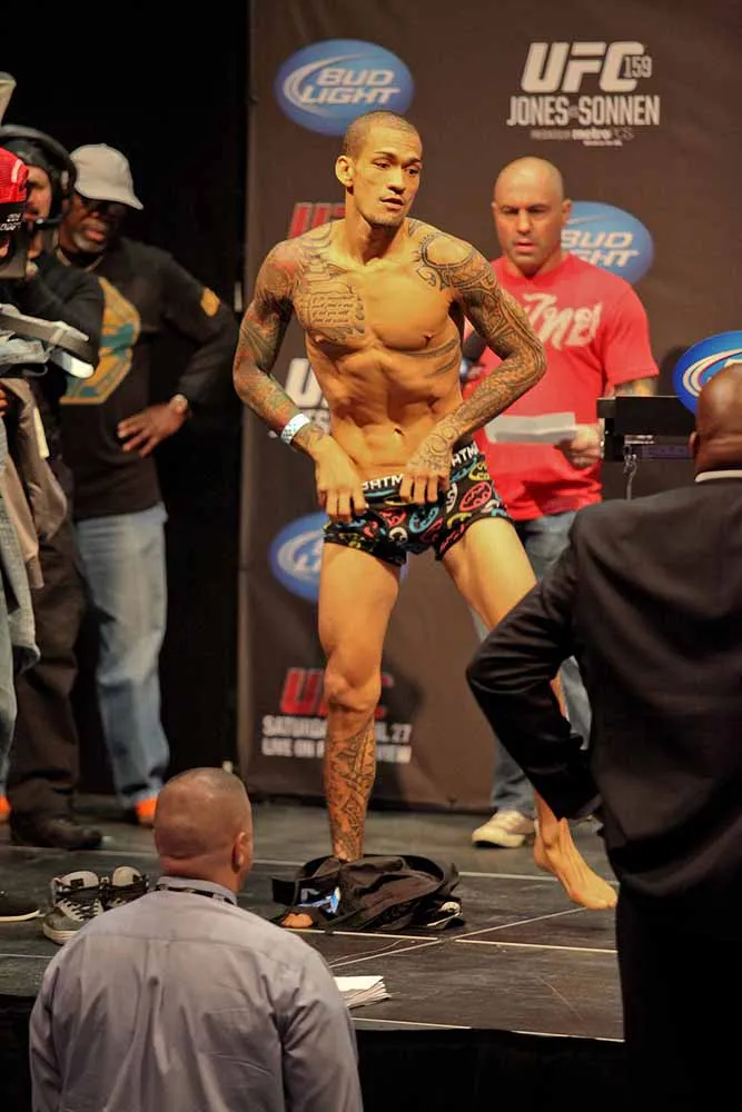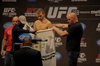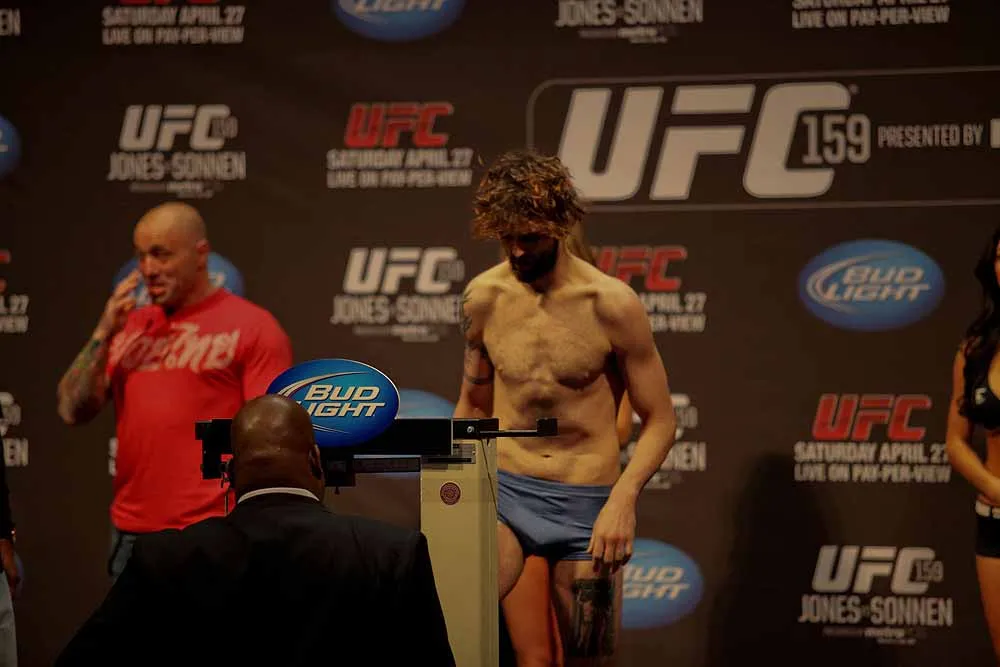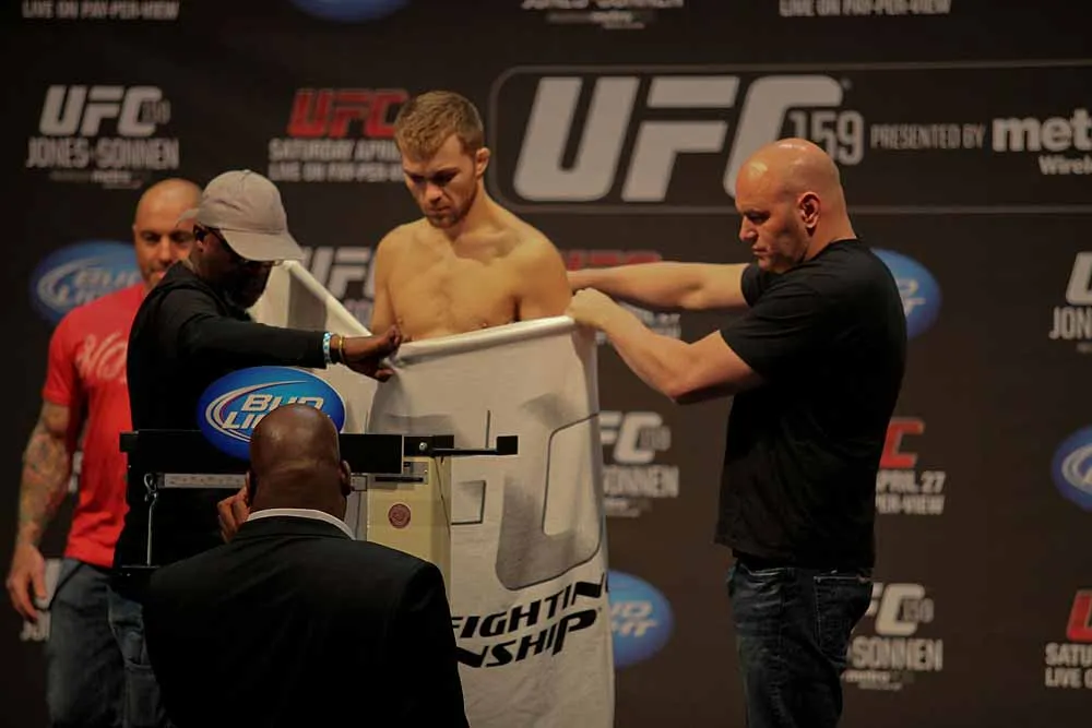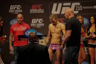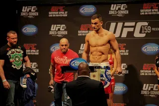 EDGE covered UFC 159 at the Prudential Center in New jersey and captured these great photos at the weigh-ins. Check out these hot fighters as they take their clothes off to step onto the scale!