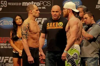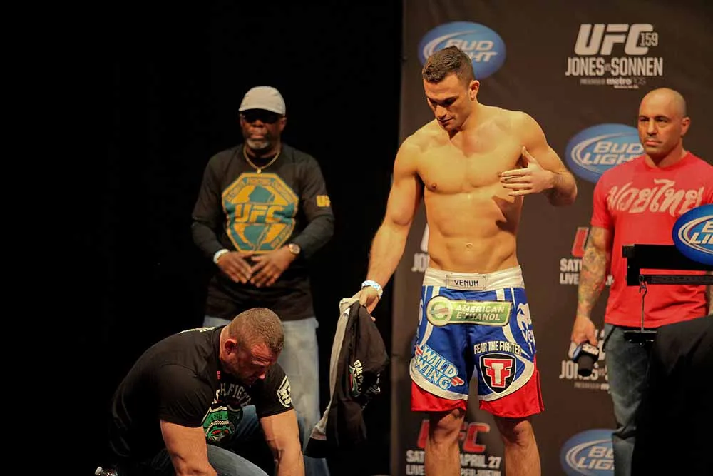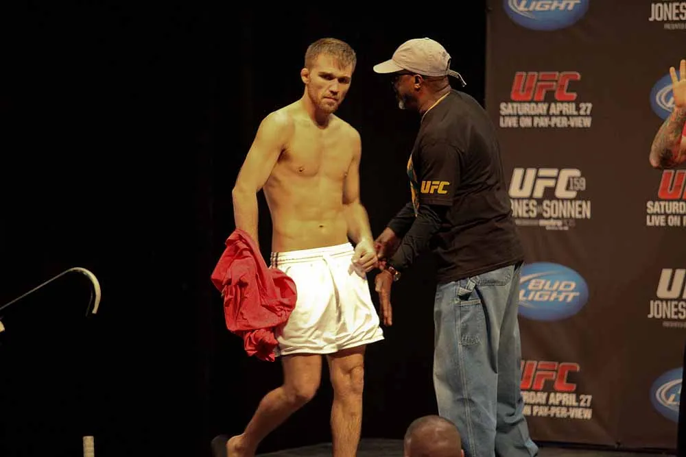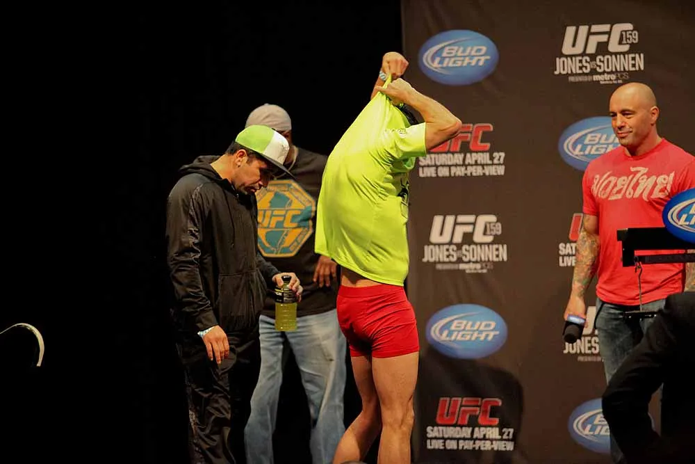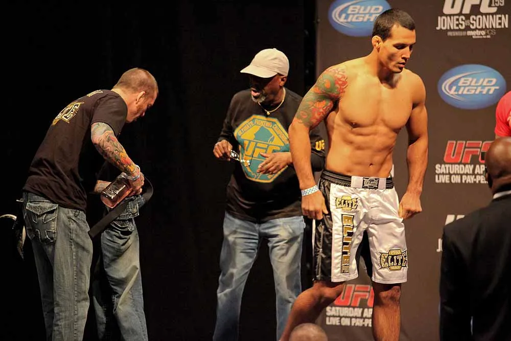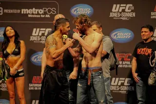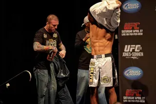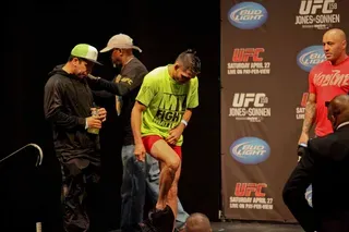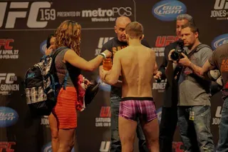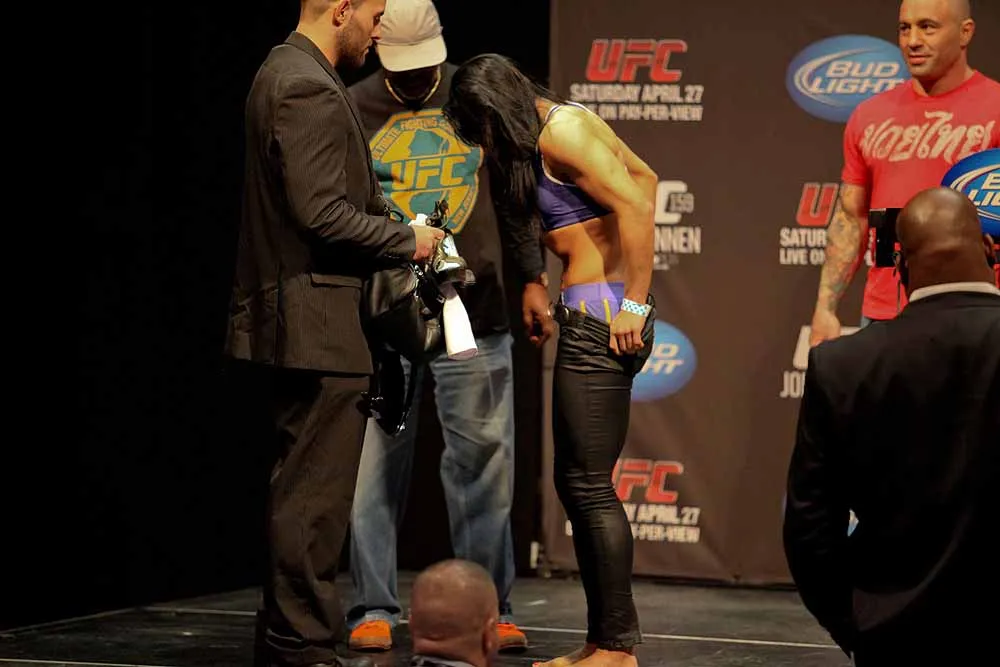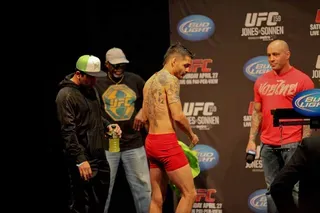 EDGE covered UFC 159 at the Prudential Center in New jersey and captured these great photos at the weigh-ins. Check out these hot fighters as they take their clothes off to step onto the scale!