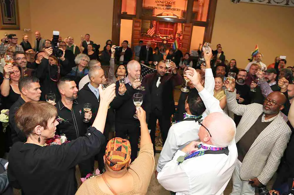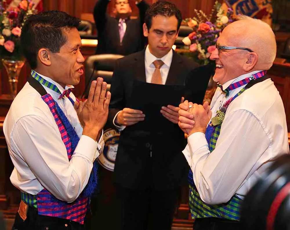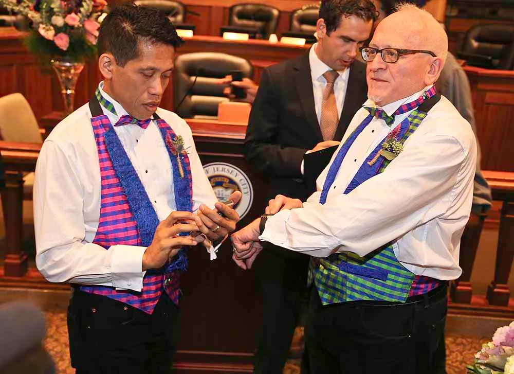 Same sex couples are finally legal to marry in NJ! This morning, at 12:01AM the honorable Mayor Steven Fulop officiated over eight couples, among them Richard Kiamco and David Gibson, the first couple to file an appeal in NJ Supreme Court.